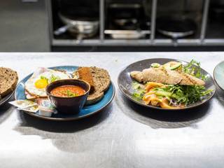 Das Bistro befindet sich an einem schönen Ort in der Mitte des Geländes mit einem fantastischen Blick auf die Wasserstraße von allen Orten. Die geräumige Terrasse bietet Schatten, ist aber auch ein schöner Ort für Menschen, die die Sonne genießen möchten.