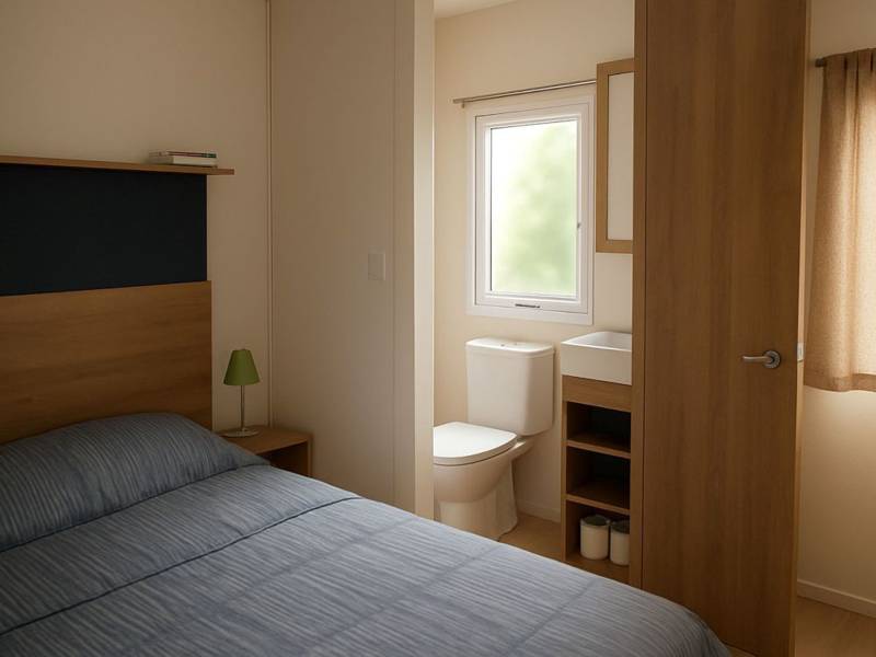 - Een tweepersoonsslaapkamer met een badkamer en suite, wat extra comfort en privacy biedt